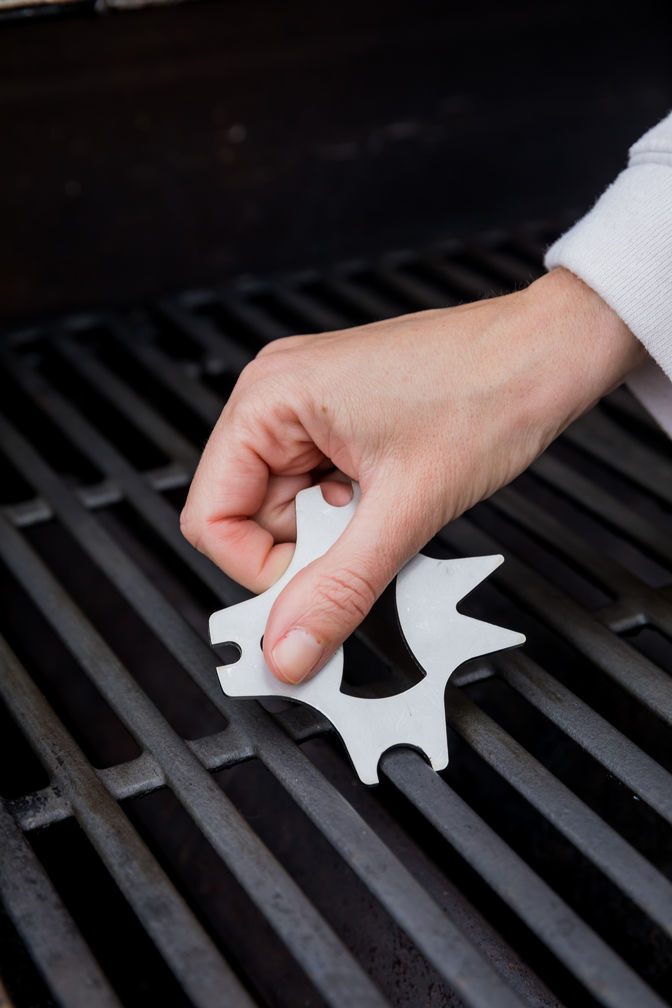 Herramienta para eliminar las incrustaciones y suciedad resistente de las parrillas de barbacoas y hornos. Limpia fácilmente sin rayar ni causar ningún daño físico a las parrillas los restos de grasa requemada. Abre-botellas incorporado en el diseño.