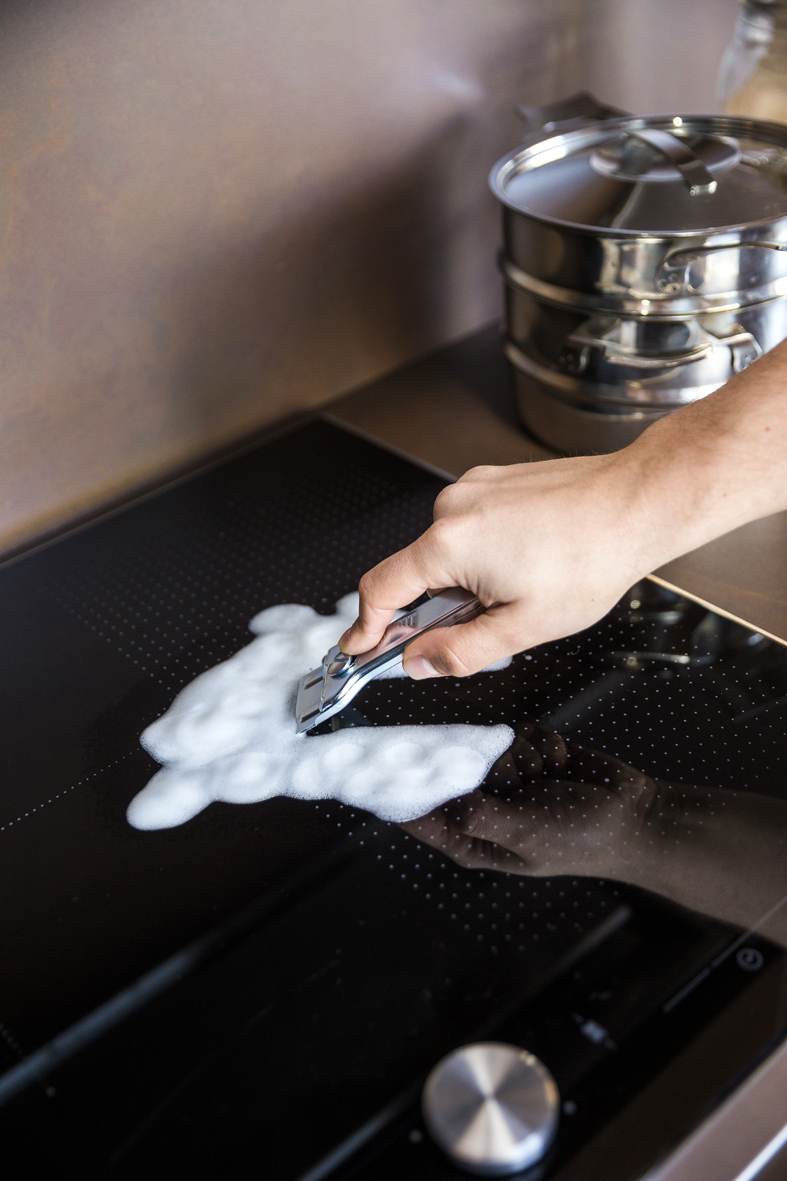 Herramienta necesaria para eliminar las incrustaciones y suciedades resistentes de vitrocerámicas, vidrios y azulejos. Limpia fácilmente sin rayar ni causar ningún daño.